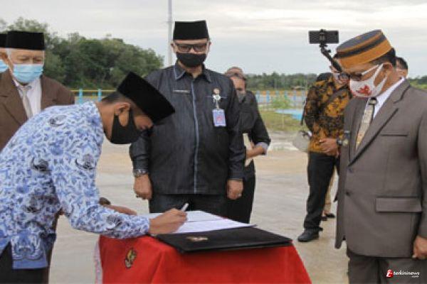 Uniknya kegiatan pelantikan dan pengambilan sumpah janji dilaksanakan di ruang terbuka di Embung Bukit Tumang, Kecamatan Singkep Barat, Lingga Selasa (4/8/2020).