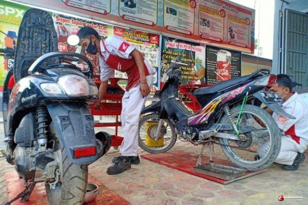 Juga ada layanan safety part yang merupakan layanan pengecekan di 16 titik sepeda motor antara lain minyak rem,battery, pad set dll. Konsumen cukup mengisi formulir free pass yang disediakan dan akan langsung mendapatkan gratis pemeriksaan safety parts.
