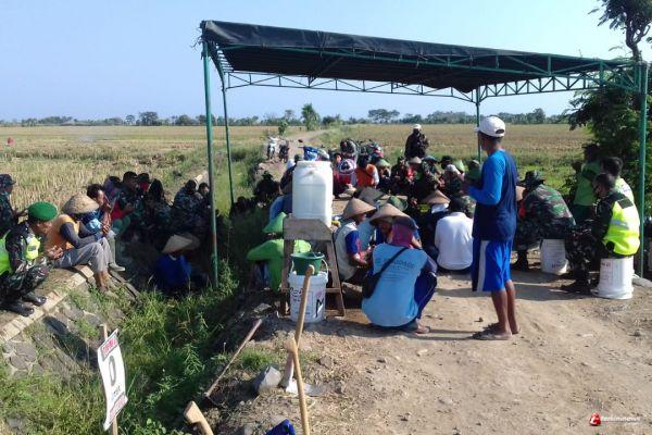 "Untuk bisa menyelesaikan pekerjaan yang saya sebutkan tadi tentu bukan perkara mudah, butuh kerja keras dan kerjasama yang baik agar dapat selesai tepat waktu dan hasilnya juga memuaskan. Apakah saudara-saudara saya di Desa Sendangkulon dan rekan-rekan TNI sudah siap?" Ujar Kasdim memberikan semangat warga dan anggotanya.