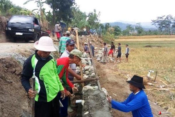 “Beberapa sasaran fisik terprogram sudah mulai digarap, yakni pekerjaan talud di kanan-kiri jalan dengan volume 2,7 kilometer setinggi 0,5 - 1,5 meter, pekerjaan 3 unit plat deker, serta gorong-gorong 1 unit sepanjang 4 meter dengan lebar 1 meter,” jelas Danramil 08 Bumiayu, Kapten Armed Jupriadi.