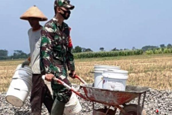 Walau kondisi cuaca yang panas Ia tidak segan dan cangguh untuk membantu dorong matrial untuk pengecoran jalan bersama dengn masyarakat,sekaligus memberikan semangat kepada anggotanya dan masyarat dalam bekrja pembangunan jalan demi mewujutkan impian masyarakat Desan Sendangkulon khususnya Dusun Pening.