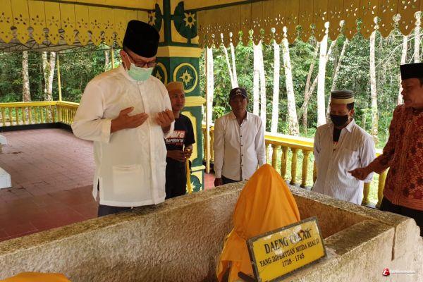 TANJUNGPINANG - Bakal Calon Bupati Bintan, Alias Wello menyempatkan diri melakukan ziarah ke makam leluhurnya Daeng Marewah dan Daeng Celak di Hulu Riau, Tanjungpinang, Selasa (15/9/2020).