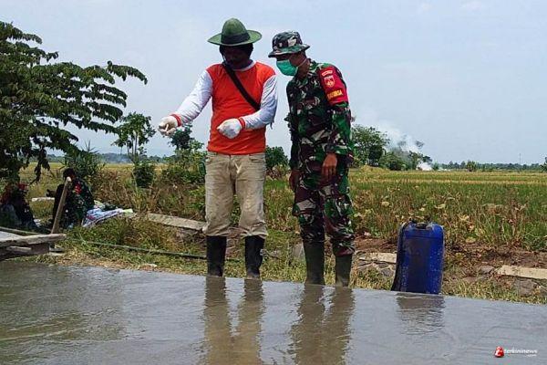 Aggota TNI dan Warga Saling Berbagi Penyemangat Dalam TMMD Reg-109