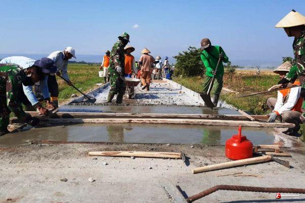 Haryanto (40), salah satu warga yang ikut bekerja dalam pengecoran jalan mengatakan salut dan bangga kepada TNI yang selalu semangat dalam kegiatan.