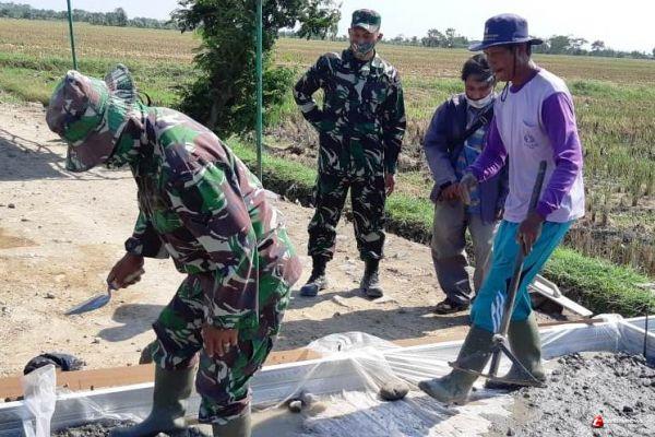 Tingkatkan Perekonomian , TNI dan Warga Bersama Membangun Jalan TMMD Kedal