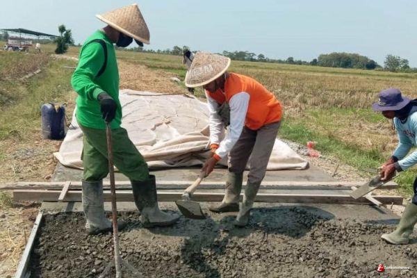 Dengan dibantu warga, Satuan Tugas TNI Manunggal Membangun Desa (TMMD) Reguler ke- 109 Kodim 0715/Kendal, di Desa Sendang kulon, Kecamatan Kangkung Kabupaten Kendal, sedang merapikan pengecoran jalan. Terlihat semangat anggota TNI dalam pekerjaan tahap pengecoran itu.