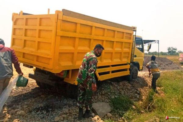 Ketika sopir kurang hati-hati pasti akan terperosok"setiap pendistribusian material kami selalu berpesan pada para sopir untuk berhati-hati sebab jalan yang dilalui agak susah"ujar Babinsa Sendangkulon Serda Rosiantoko.