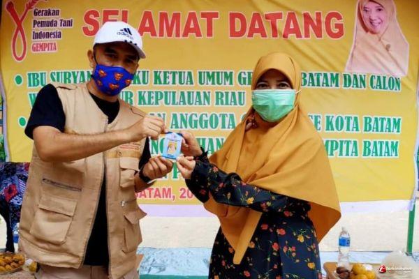 BATAM - Cawagub Kepri Suryani hadir di tengah para petani dalam rangka Pengukuhan Pengurus Gerakan Pemuda Tani Indonesia (Gempita) Kota Batam pada Ahad (20/09/2020) di Sekretariat Gempita, Ruko Puri Selebriti 1 Blok B No. 18, Nongsa, Batam.