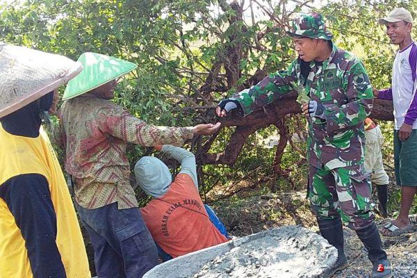 Salah satu Warga, Purwanto (55) menawari anggota satgas TMMD buah kersen untuk dimakan di lokasi TMMD. "Pak TNI geh remen buah kersen, kulo pendhetke geh,”ujar Purwanto