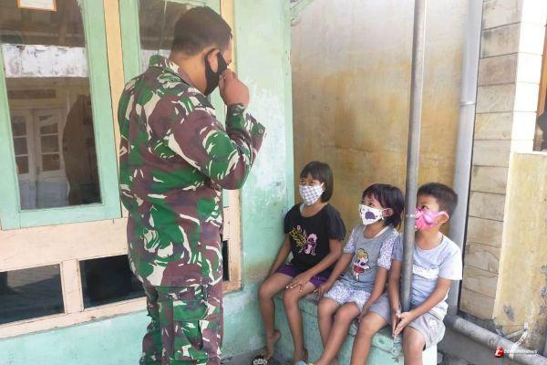 Salah satu Anggota Satgas TMMD ke -109 Serda Listiyono mengatakan memberitahu anak anak soal pemakaian masker ketika keluar rumah, harus dilakukan untuk membangun kesadaran dalam menjaga diri dari corona.