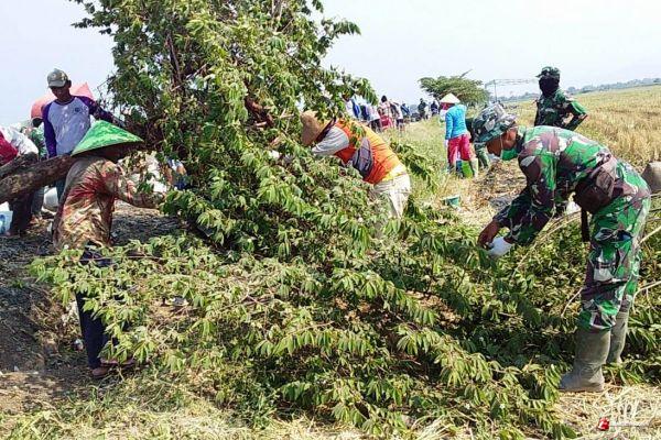Para Satgas yang tergabung dalam TMMD ( TNI Manunggal Membangun Desa) -Reg - 109, harus memotong dan membersihkan Pohon pohon Karsen yang berada di pinggir Badan Jalan, pohon yang kadang juga sangat berguna, disaat panas bisa digunakan untuk berteduh dan disaat haus buahnya bisa menjadi obat penghilang dahaga oleh Satgas TMMD dan warga Desa Sendang Kulon Kecamatan Kangkung saat bekerja.