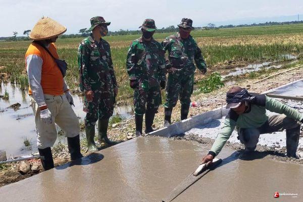 Kepala Staf Kodim (Kasdim) 0715/Kendal Mayor Inf Sukamto di dampingi Danramil 05/cepiring Kapten Cpl Esti meninjau sasaran fisik pengecoran jalan di Desa Sendang Kulon Kec Kangkung,Kabupaten Kendal.