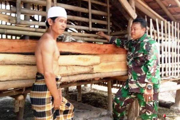 Bertugas di TMMD Reguler Brebes, Babinsa Motivasi Peternak Kambing di Musim Kemarau