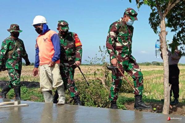 Saat meninjau proses pengecoran jalan, yang merupakan sasaran fisik pokok TMMD, Danrem Ari minta agar semua yang terlibat di pembangunan jalan itu memperhatikan kualitasnya.
