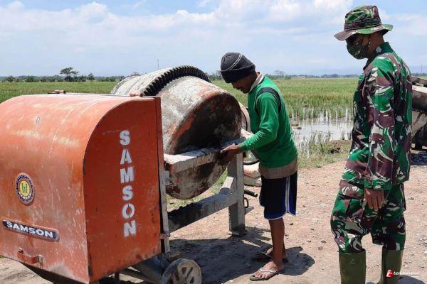 Kepala Staf Kodim ( Kasdim ) 0715/Kendal, Mayor Inf Sukamto secara langsung mengecek peralatan yang digunakan untuk pembangunan pengecoran jalan Desa Sendang Kulon Kecamatan Kangkung Kabupaten Kendal.