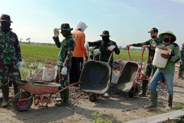 “Kami Satgas TMMD bekerja secara bersama-sama dengan warga mengerjakan betonisasi, kami pun pantang mundur sebelum sasaran fisik di Desa Sendangkulon selesai,” ucap Sertu Agus Hermawan.
