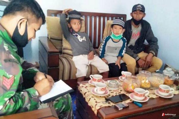 Tampak Kopka Dillyanto sedang mendata anak warga Dukuh Saljan RT. 01 RW. 06, Desa Kalinusu, Kecamatan Bumiayu, Kabupaten Brebes, Jawa Tengah, yaitu Moh Rizal (8) dan Raditya Irawan (7). Minggu (27/9/2020).