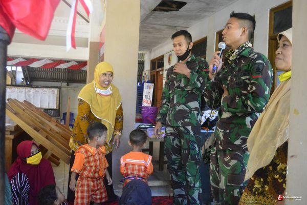 Lamongan – Camat Solokuro dan Kepala Desa Tebluru mengunjungi lokasi TMMD 109 yang menjadi sasaran kegiatan. Beberapa lokasi tersebut mulai dari pengerjaan rabat jalan, bantuan RTLH dan pengerjaan fisik lain maupun non fisik tak luput dari tinjaunnya. Termasuk kegiatan pendidikan Edukasi kepada anak yang dilaksanakan oleh Duo Ganteng Prada Arif dan Prada Basuki. Mereka nampak asyik bercengkrama dengan anak-anak memberikan dongengan.