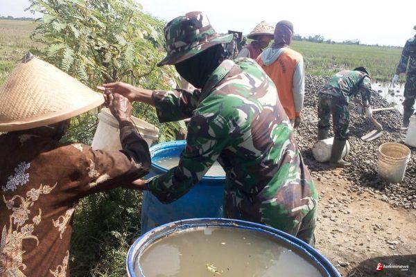 Dikemukakan, Babinsa setempat Serda Rosiantoko, untuk air pengecoran jalan TMMD, sangat berlimpah tidak usah membuat sumur-sumur di sawah terus disedot memakai genset.