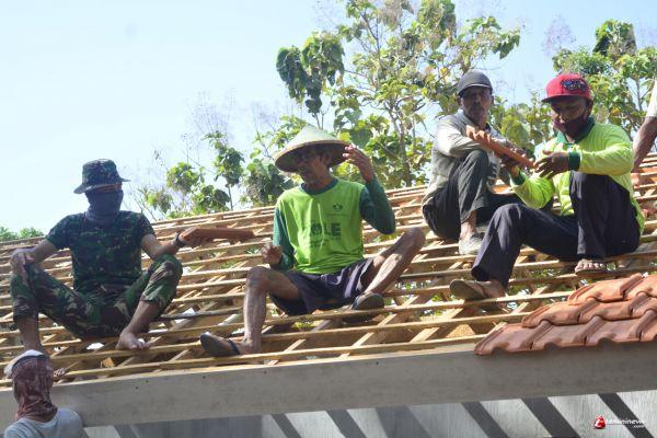 Warga yang ikut gotong royong mengikuti arahan atau satu komando sekaligus dalam pengerjaan pemasangan Genteng Rumah Isolasi. Ada satu tukang profesioanal yang dipercaya satgas. Karena pekerjaan atap bukan pekerjaan mudah dan posisinya juga diatas tentu sangat berbahaya sekali kalau sembrono. Maka untuk tukang profesioanal serta warga yang sudah berpengalaman berada di atas.
