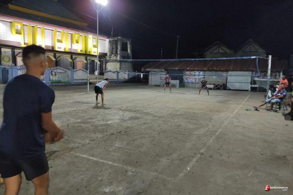 Untuk mengurangi kepenatan dan juga mempercepat untuk tidur pada malam hari, anggota satgas melakukan olah raga voli malam dahulu.