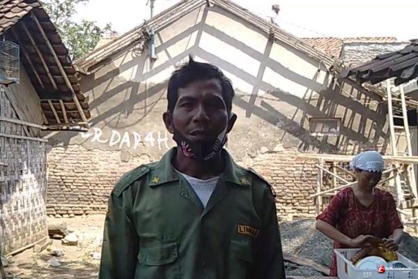 BREBES – Sarto (43), anggota Linmas Desa Kalinusu, Kecamatan Bumiayu, Kabupaten Brebes, Jawa Tengah, kini mulai bernafas lega. Pasalnya, Rumah Tidak Layak Huni (RTLH) miliknya saat ini terus dikebut rehabnya oleh Satgas TMMD Reguler 109 Kodim 0713 Brebes, bersama warga setempat. Sabtu (3/10/2020).