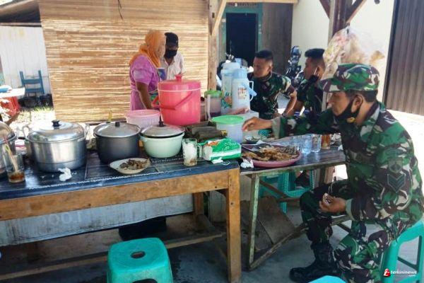 Termasuk Praka Haryono anggota satgas dari batalyon Arhanudse-15 yang sering terlihat nongkrong di warung yu Siti" saya suka masakan yu Siti ini rasanya sedap pas bumbunya,apalagi makanan favorit andalannya yaitu menu Rica-rica mentok wah gurih dan pedasnya pas.. mantul pokoke" ungkapnya