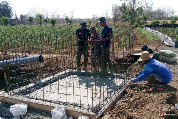 "Alhamdulillah kita sudah melakukan pengecoran setelah kemarin kita memasang ram besi.Bak pembagi air ini nantinya akan dibuat untuk tandon di sawah dan digunakan untuk menyirami tanaman,"ujar Danki SSK TMMD ke-109 Kaptrn Suroso.