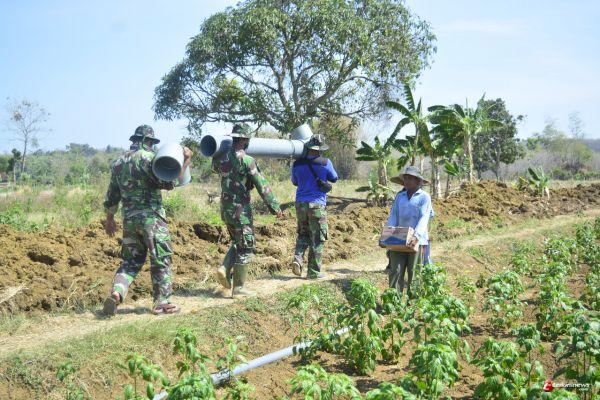 LAMONGAN – Dansatgas TNI Manunggal Membangun Desa Ke 109 Kodim 0812/Kabupaten Lamongan Lekol Inf. Sidik Wiyono telah meninjau langsung pelaksanaan Pengerjaan pipanisasi sepanjang 950 meter ke lahan pertanian di Desa Tebluru Kecamatan Solokuro Kabupaten Lamongan, Senin (21/9/20).