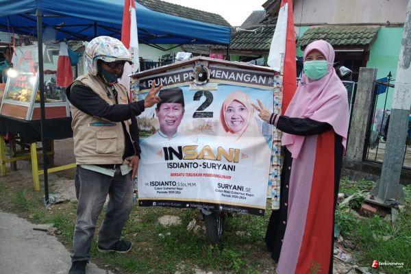 BATAM - Warga Batam bernama Sukario (46) melakukan kampanye kreatif untuk Paslon idolanya INSANI di perumahan dengan membagikan stiker dan ajakan kepada warga memilih Isdianto-Suryani (INSANI) dengan menggunakan sepeda motor yang diberikan pengeras suara ajakan memilih INSANI.