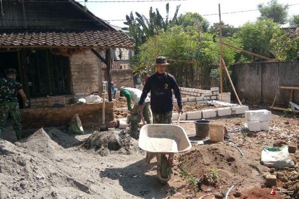 Salah satunya seperti yang terlihat, seorang anggota Satgas TMMD 109 Kodim 0812 Lamongan yang sedang membawa semen untuk pembangunan Rumah ibu khoirun niswa di Desa Tebluru Kecamatan Solokuro, Kabupaten Lamongan.
