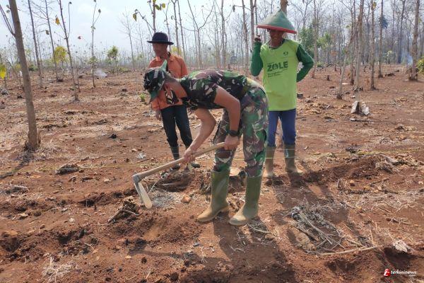 LAMONGAN - Tak hanya pandai soal ilmu menjaga pertahanan negara, Satgas TMMd juga multi fungsi mampu mencangkul dan membantu para petani.