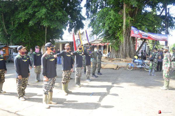 LAMONGAN - Anggota Satgas TMMD Ke 109 Kodim 0812 Lamongan Serda Muchammad Irsyad Irfanni latih PBB anggota Banser dan Menwa bertempat di lapangan bola voll Desa Teblru, Senin (05/10)