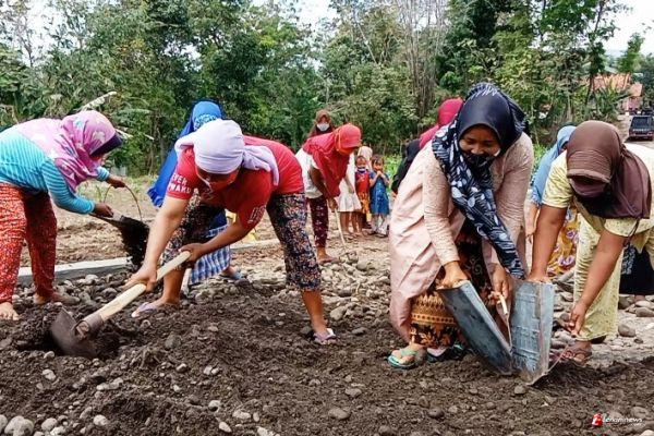 Patut Dicontoh, Semangat Emak-emak Kedung Kandri Bantu Satgas TMMD Brebes