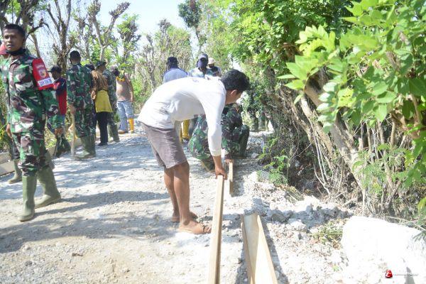 Dalam pelaksanaan pekerjaan perabatan jalan sepanjang 900 Meter warga dan satgas terus bersatu padu, bahu membahu, Gotong royong penuh kekeluargaan. Dengan kekompakan dan kebersamaan tersebut seluruh komponen masyarakat begitu bangga, karena dari gotong royong dan kekompakan itulah keberhasilan Program akan dapat terwujud dengan nyata.