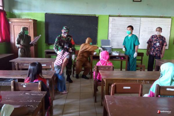 Cilacap -- Dukung Program Kesehatan Anak, Babinsa Koramil 14/Cimanggu Sertu Mulyono melaksanakan kegiatan pendampingan program Bulan Imunisasi Anak Sekolah (BIAS) di SD Negeri Cilempuyang 1 Desa Cilempuyang Kecamatan Cimanggu, Rabu (07/10/2020).