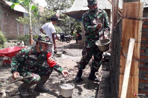 Cilacap - Tak ingin berpangku tangan, Danramil 06/Kesugihan Kapten Inf Sueb dan selaku Dan SST Satgas TMMD Sengkuyung III turun langsung dalam pembangunan Rehab Rumah Tidak Layak Huni (RTLH) yang kini berlangsung di wilayahnya yaitu di Desa Karangjengkol Kecamatan Kesugihan.