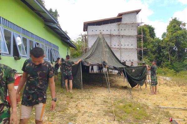 SINTANG - Sebanyak seratus sepuluh Prajurit TNI dibawah naungan Kodim 1205/Sintang, sudah tiba di Desa Tirta Karya Kecamatan Ketungau Tengah, Kabupaten Sintang, Kalimantan Barat (kalbar).