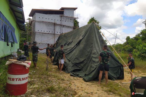 Begitu Tiba, Ratusan Prajurit Kodim 1205/Sintang, Langsung Pasang Tenda dan Sapa Warga