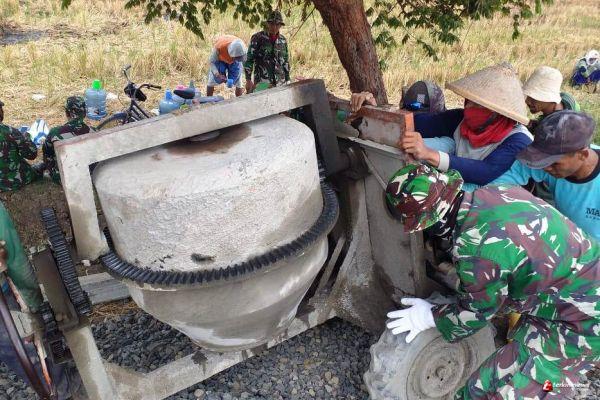 ”Dengan mempraktekkan prinsip itu, pekerjaan berat terasa menjadi lebih ringan,” ungkap Bapak Kamto, warga Desa Sendang Kulon yang ikut gotong royong di lokasi pengecoran jalan TMMD Reguler ke 109. Bahkan berkat gotong royong itu mesin molen super berat juga sukses.