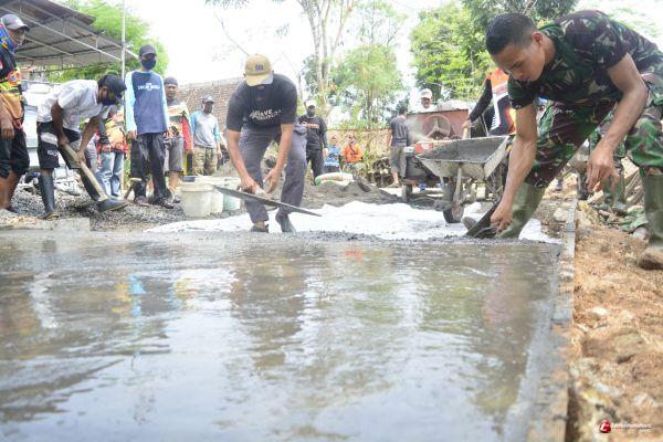 Lamongan – Jalan Rabat Beton penghubung antar Kecamatan Di Desa tebluru dikerjakan satgas TNI Manunggal Membangun Desa Ke 109 Kodim 0812 Lamongan untuk meningkat kesejahteraan masyarakat.