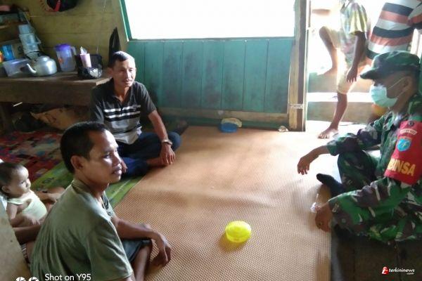 SINTANG - Kedatangan Satgas TMMD 109/Sintang, Serma Bambang kerumah Yahya, warga Desa Tirta Karya, Kecamatan Ketungau Tengah, Kabupaten Sintang, Provinsi Kalimantan Barat, Rabo (23/9/2020), disambut hangat oleh keluarga Yahya.