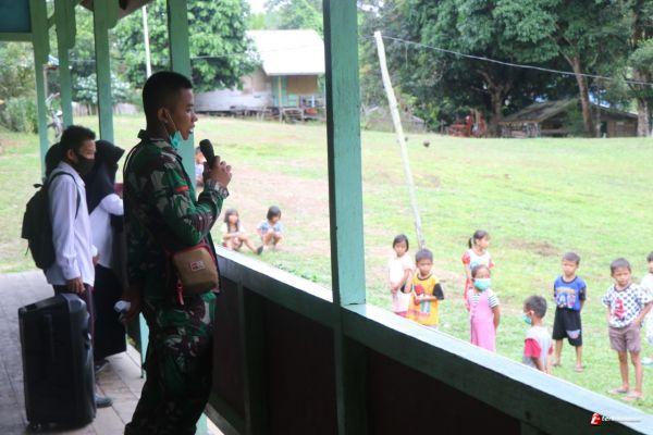 SINTANG - Prada Agung dan Prada Dorang, Dua Satgas TMMD 109/Sintang, berkunjung ke Sekolah Dasar (SD) Sintang, Rabu (23/09/2020) pagi.