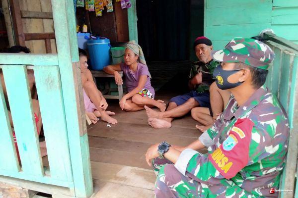 Kunjungi Warga di Rumah Surti, Sertu Irwin Himbau Untuk menggunakan maskerÂ