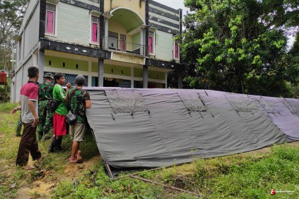 Satgas TMMD 109 Kodim Sintang Bersama Warga Dirikan Tenda Posko