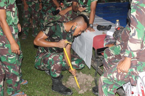 Tampak dari raut wajah Satgas TMMD 109 Kodim Sintang yang berseringah dalam menjalankan tugas fisik kegiatan TMMD Reguler 109 Tahun Anggaran 2020 Kodim Sintang di Desa Tirta Karya. Bahkan terlihat, mereka masih menggali lubang di lokasi sasaran kegiatan TMMD 109 Kodim Sintang. (1205/Sintang).