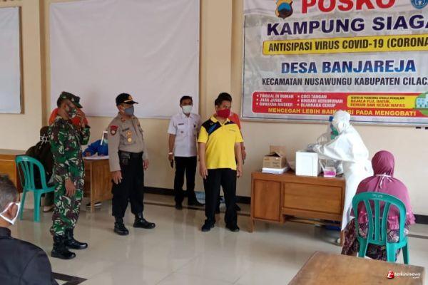 Cilacap - Satgas Covid-19 Kecamatan Nusawungu melaksanakan Swab terhadap warga masyarakat yang kontak erat dengan salah satu warga terkonfirmasi Covid-19. Kegiatan Swab dilakukan di Balai Desa Banjareja Kecamatan Nusawungu Kabupaten Cilacap, Jumat (9/10/2020).