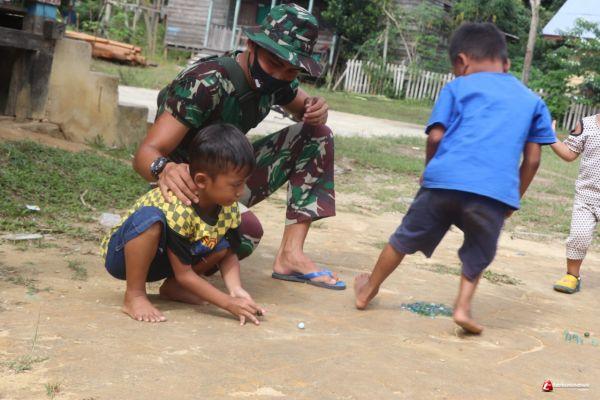Begitulah keakraban yang tersaji pada gelaran dua pekan Pelaksanaan TMMD 109/ Sintang. Keberadaan Para Satgas TMMD begitu disukai dan dirindukan oleh anak-anak di desa Perbatasan Negara ini (1205/Sintang)