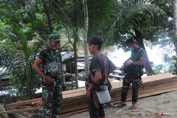 SINTANG – Kegiatan TNI Manunggal Membangun Desa (TMMD) Reguler ke 109 Kodim 1205 Sintang, yang diselenggarakan di Desa Tirta Karya, Kecamatan Ketungau, Kabupaten Sintang, Kalimantan Barat, Selasa (29/9/2020), Pratu Hamam secara rutin melakukan koordinasi dan Komsos dengan warga .