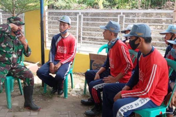 Tampak Kopral Kepala Dilyanto, anggota Tim Kesehatan Lapangan Satgas TMMD Reguler 109 Brebes, dari Klinik Pratama Kartika 13 Brebes, Denkesyah 04.04.01 Purwokerto, juga memberikan motivasi tersebut kepada para pelajar MAN 2 Brebes, Kecamatan Bumiayu, yang sengaja hadir ke Desa Kalinusu, untuk membantu TNI menyelesaikan pekerjaan rehab Rumah Tidak Layak Huni (RTLH) program TMMD. Sabtu (10/10/2020).